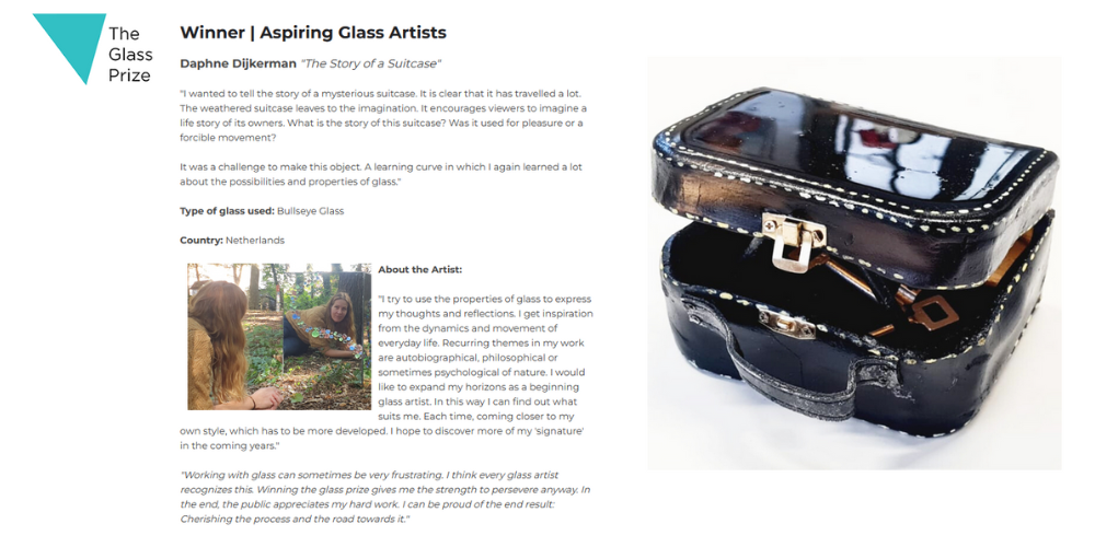 Dit jaar mag ik mij de trotse winnaar noemen in de categorie Aspirant-glaskunstenaars, met mijn inzending “The Story of a Suitcase”.